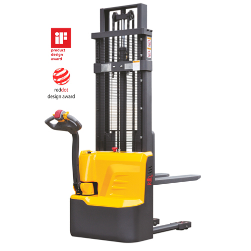 ■承載能力可達(dá)1噸。站人平臺(tái)起升高度1.2米。方便高層貨架貨物的裝卸和揀選工作。站人平臺(tái)前部配有小置物架可承載60kg左右的輕便貨物。EPS電子轉(zhuǎn)向系統(tǒng)加上自主研發(fā)設(shè)計(jì)的轉(zhuǎn)向舵