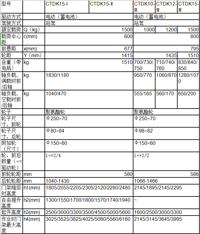 載重量1.0噸,1.2噸,1.5噸,起升高度從1.6米到5.6米,配置高低均由您根據(jù)工況任意選擇,滿足不同需求。