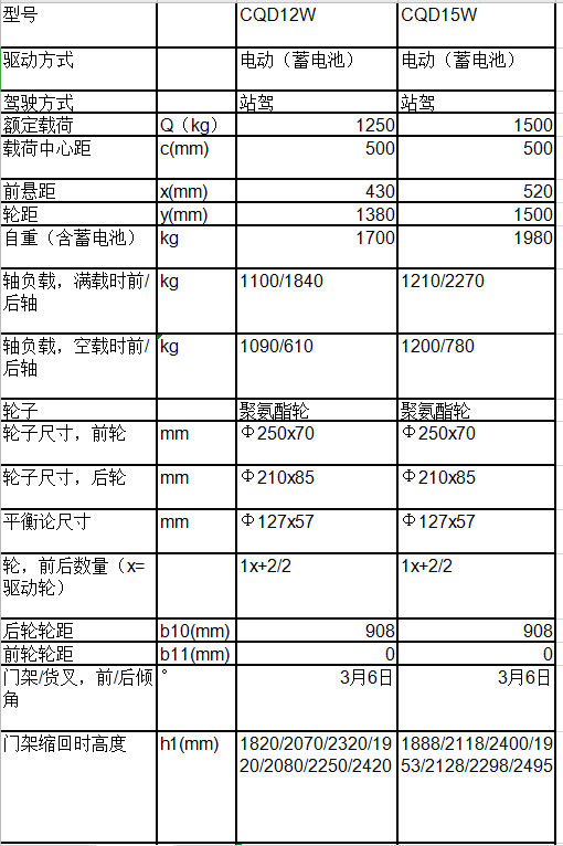 * 表示必填采購:全電動堆垛車CQD12W/15W