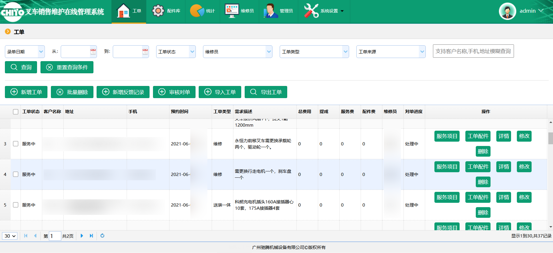 叉車銷售維修管理系統(tǒng)上線
