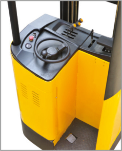 寬敞的駕駛室?guī)в惺痔崾綌嚯婇_關(guān),多功能顯示儀表具有電量顯示、工作時間累計顯示 、故障代碼顯示等。